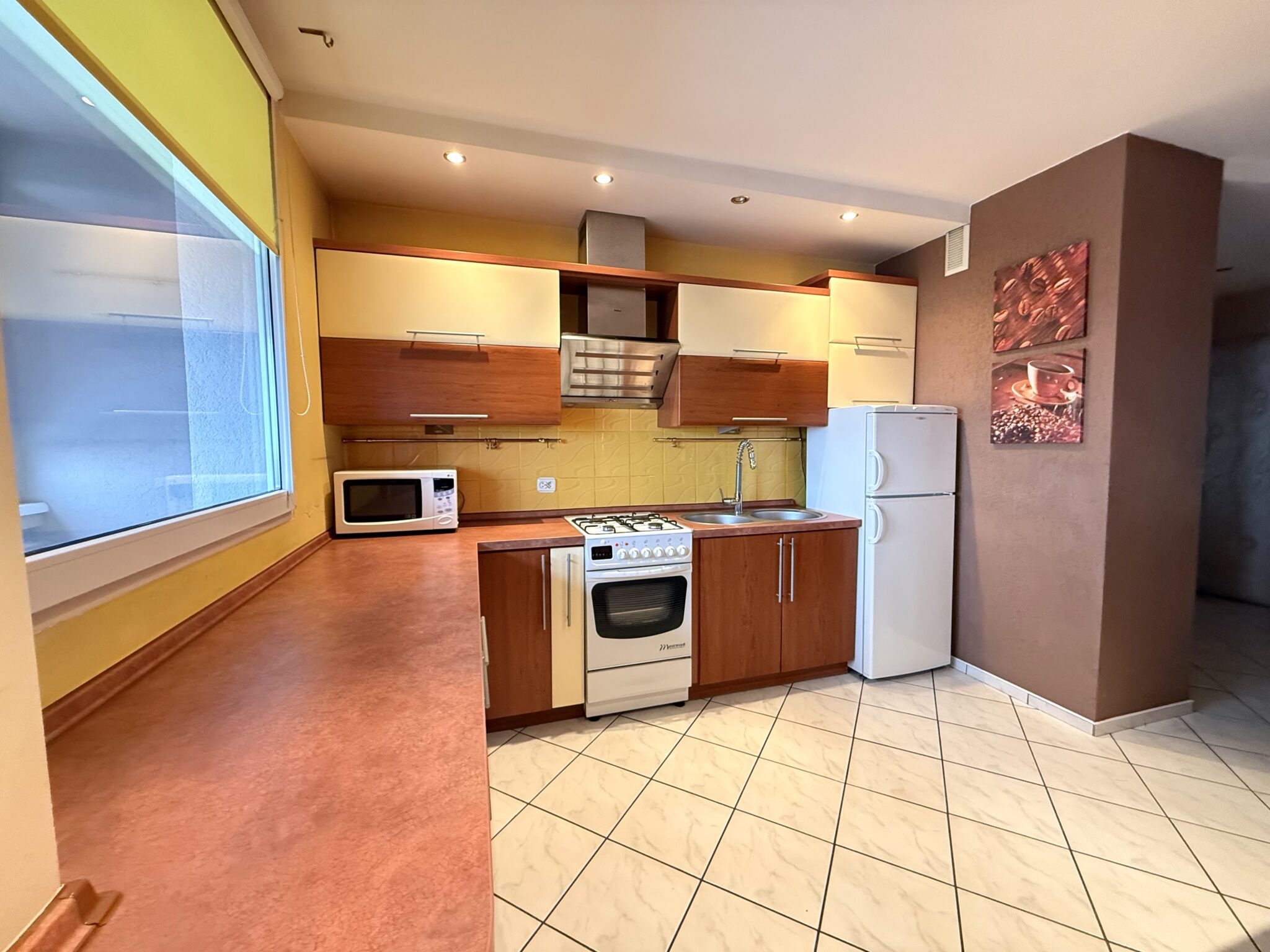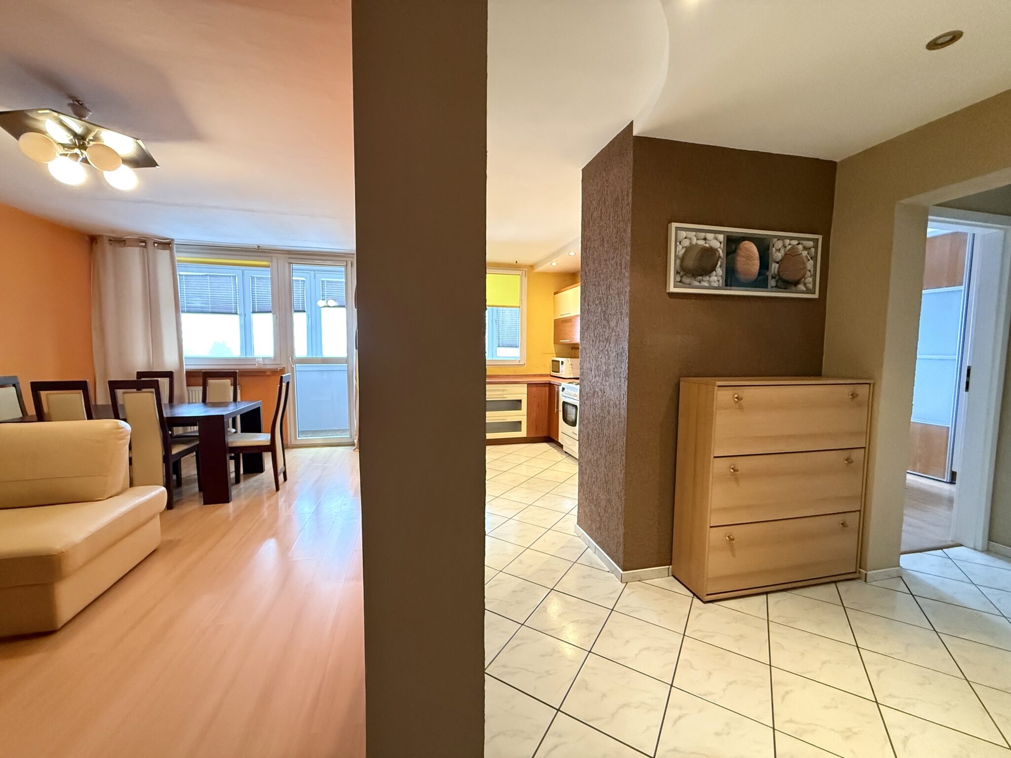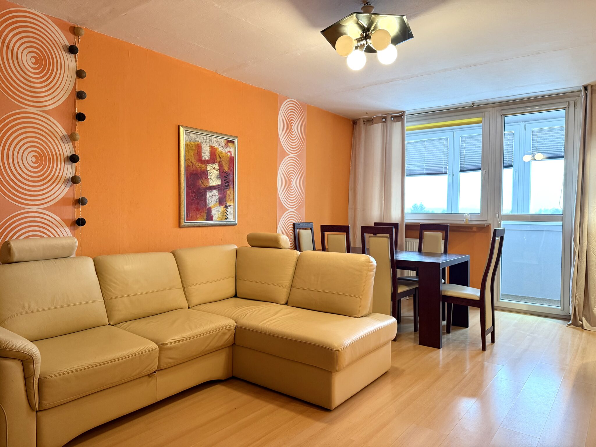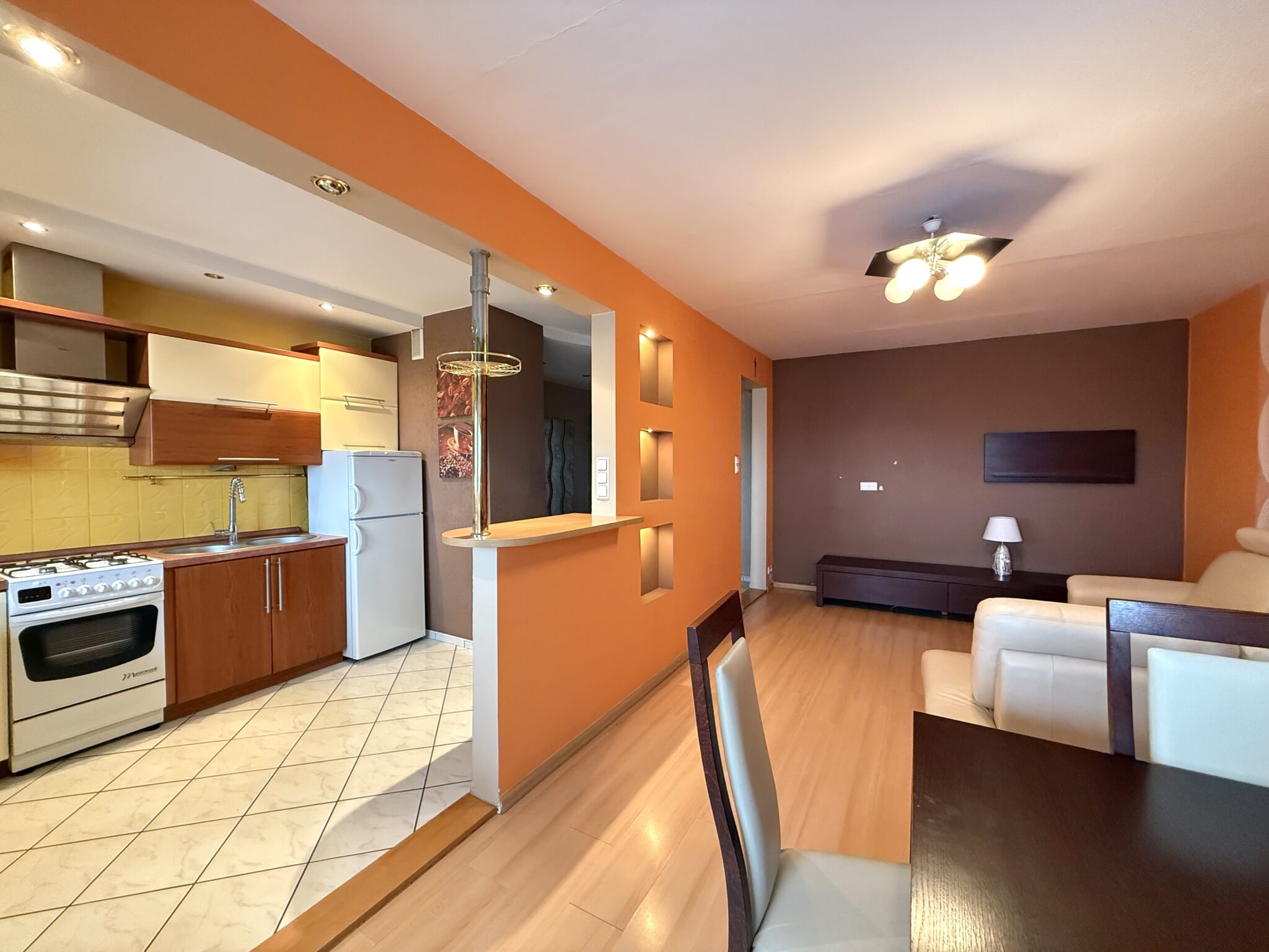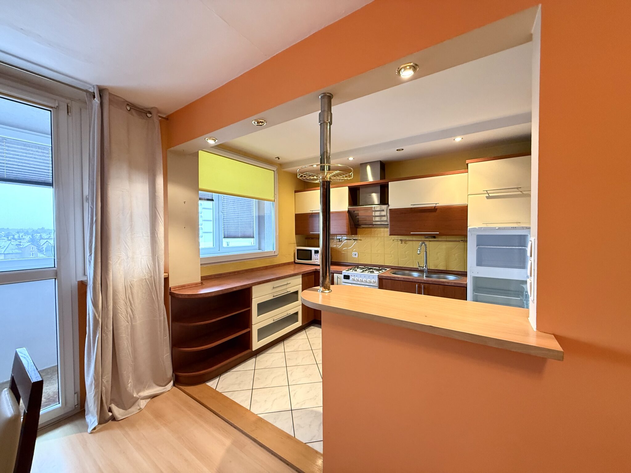 Sercem mieszkania jest jasna, otwarta strefa dzienna. Salon z aneksem kuchennym tworzy funkcjonalną przestrzeń łączącą część wypoczynkową i jadalnianą. Duże okna zapewniają bardzo dobre doświetlenie wnętrza przez większą część dnia, a zabudowany balkon zwiększa komfort użytkowania mieszkania przez cały rok.