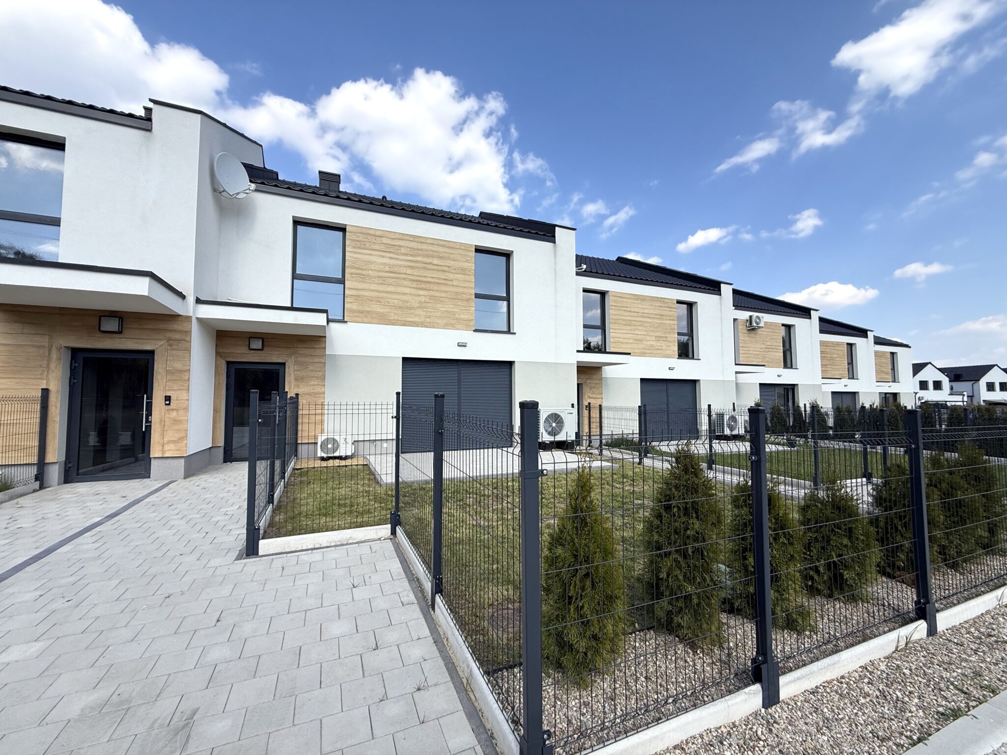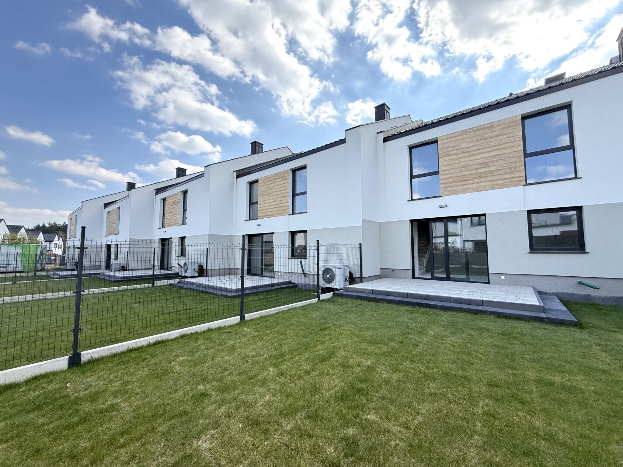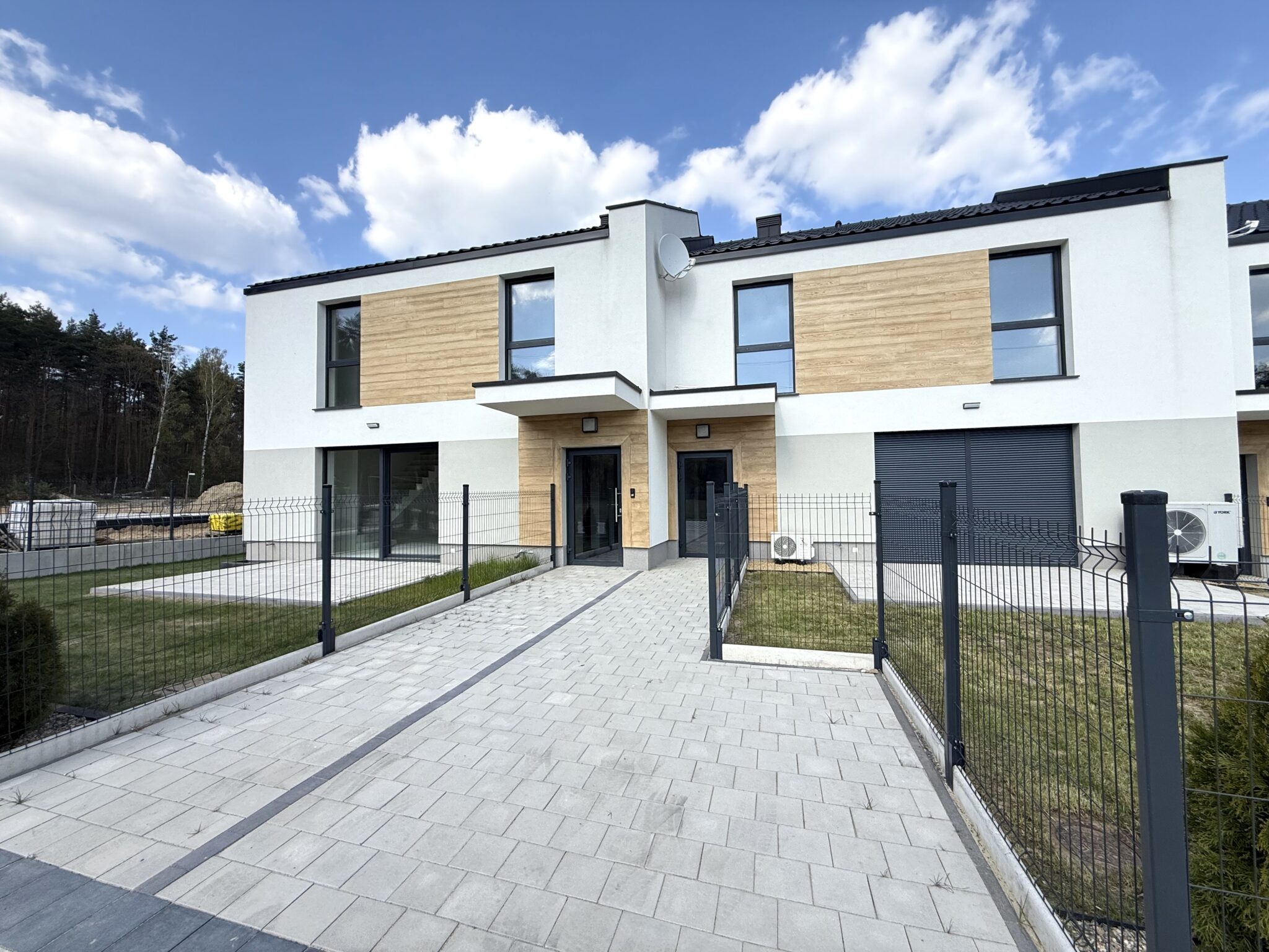 Kompleks położony jest tuż przy malowniczym lesie, którego ścieżki zachęcają do spacerów, aktywności na świeżym powietrzu i codziennego kontaktu z naturą. Prywatna droga wewnętrzna zapewnia mieszkańcom spokój, bezpieczeństwo oraz poczucie intymności, tworząc harmonijną enklawę z dala od miejskiego zgiełku.